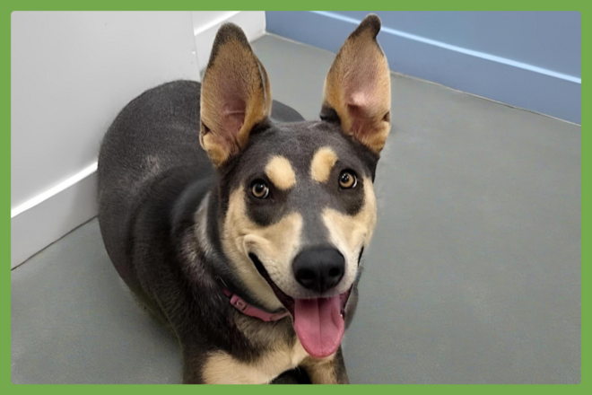 A loyal and playful two-and-a-half-year-old Siberian Husky/German Shepherd mix currently in Burbank, CA, whose expressive eyes and joyful zoomies are just the beginning of her charm.